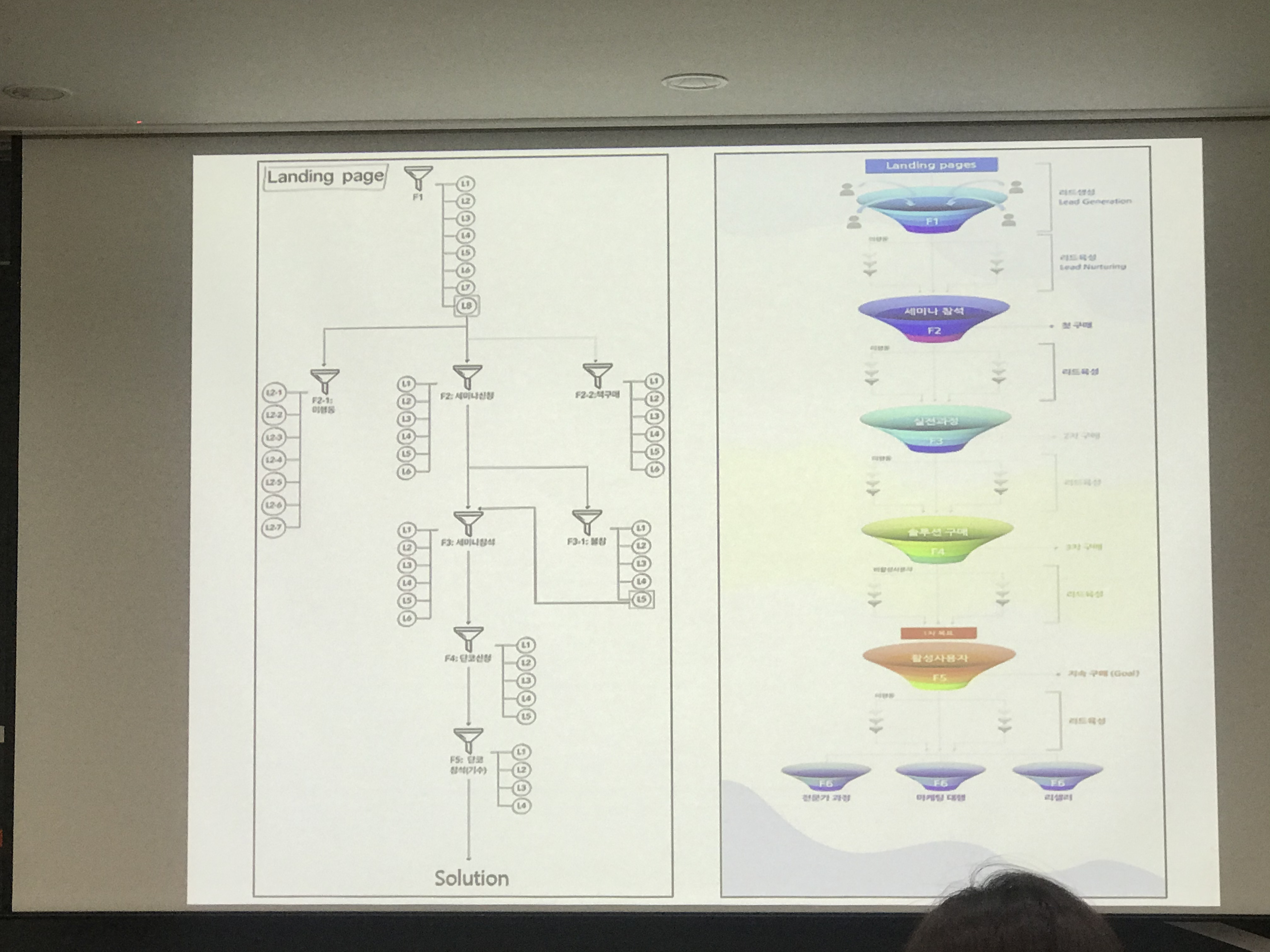 1교시는 이명신대표(본부장?)님이 리드생성, 리드 육성, 마케팅자동화 등거시적이고  개념적인 설명과 랜딩페이지 사례가 호기심을 자극했다.